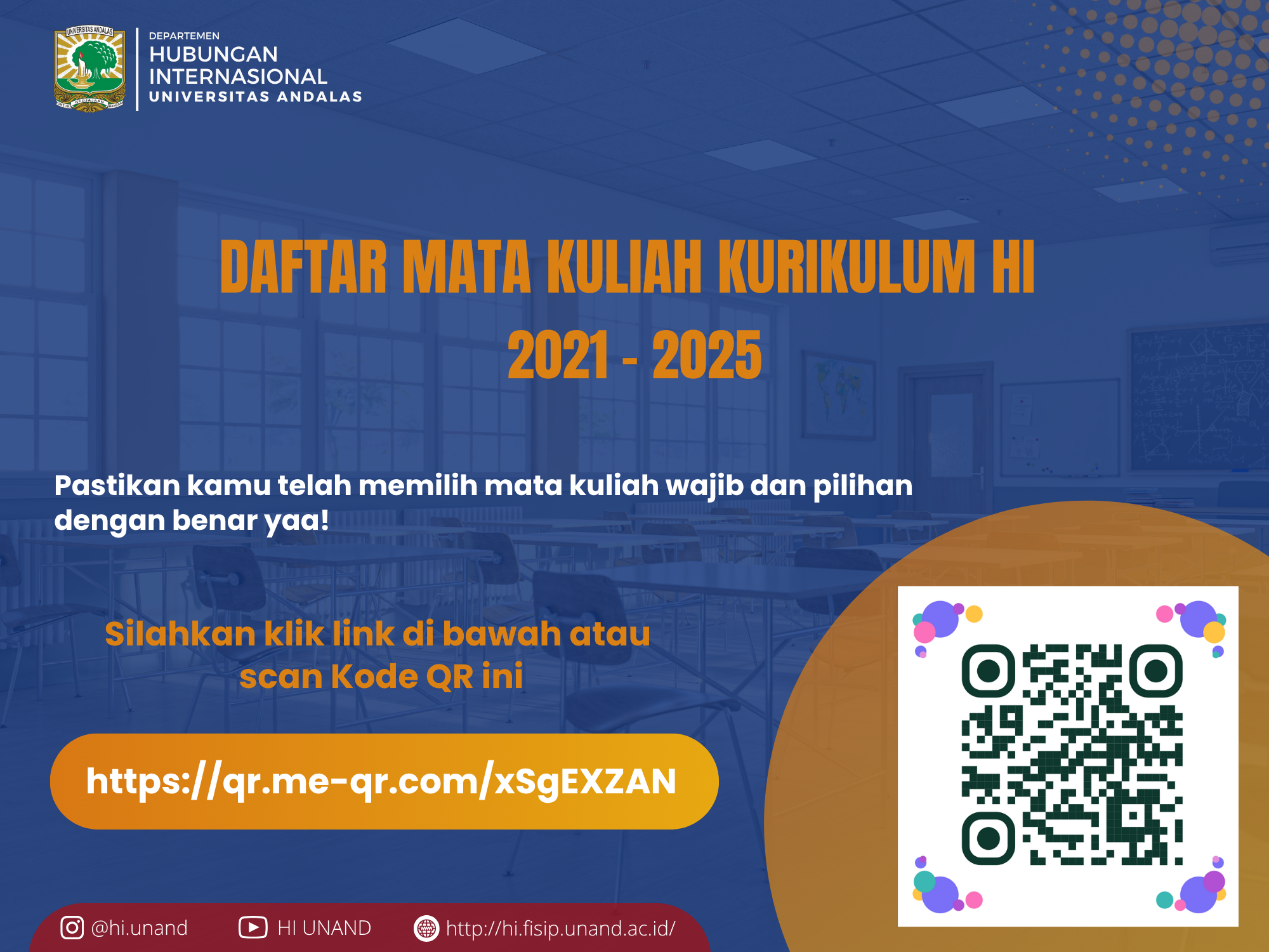 Departemen Hubungan Internasional, Fakultas Ilmu Sosial dan Ilmu Politik, Universitas Andalas, telah merilis daftar lengkap mata kuliah yang termasuk dalam Kurikulum Program Studi Hubungan Internasional tahun 2021–2025.