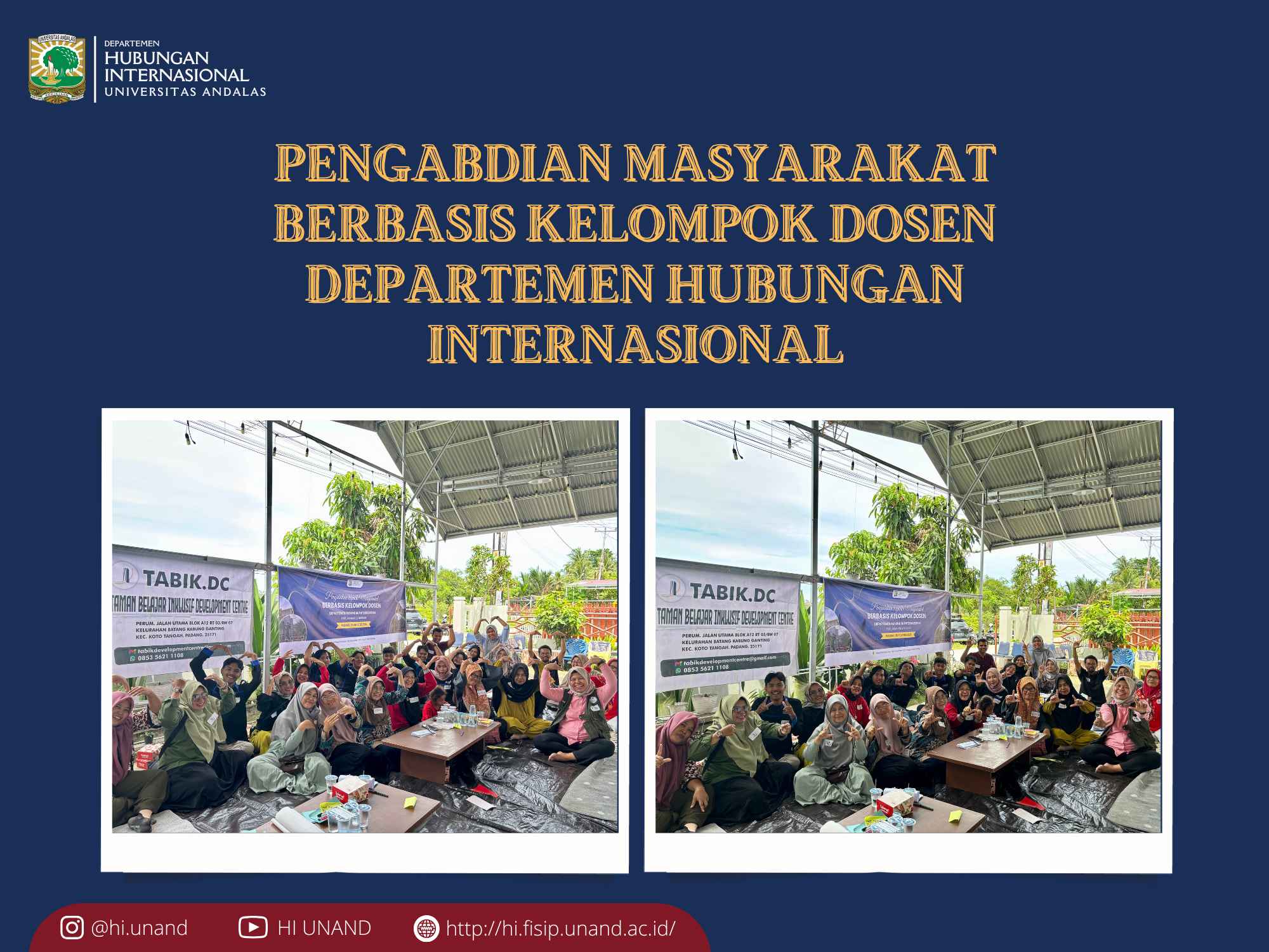 Departemen Hubungan Internasional, Fakultas Ilmu Sosial dan Ilmu Politik, Universitas Andalas kembali hadir di tengah masyarakat melalui kegiatan Pengabdian Masyarakat Berbasis Kelompok Dosen. Kegiatan ini menjadi salah satu bentuk nyata komitmen akademisi dalam menerapkan ilmu pengetahuan untuk mendukung pembangunan sosial…