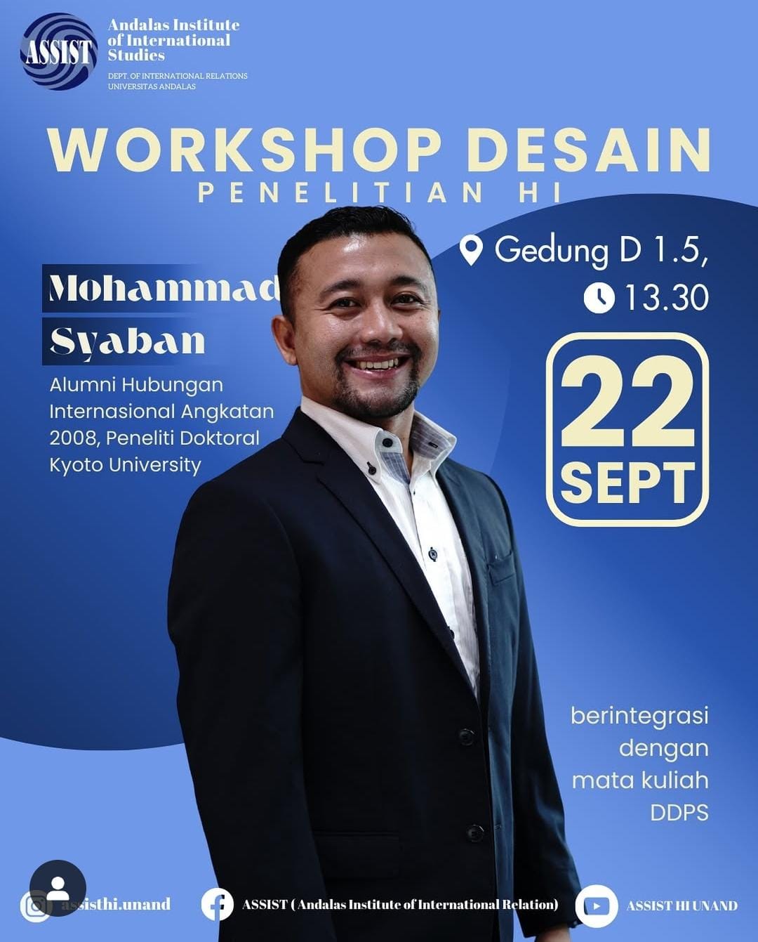 Departemen Hubungan Internasional Universitas Andalas kembali menyelenggarakan kegiatan akademik inspiratif bertajuk “Workshop Desain Penelitian HI” yang berlangsung pada Senin, 22 September 2025, di Gedung D 1.5, Fakultas Ilmu Sosial dan Ilmu Politik (FISIP) UNAND. Kegiatan ini menghadirkan Mohammad Syaban, alumni…