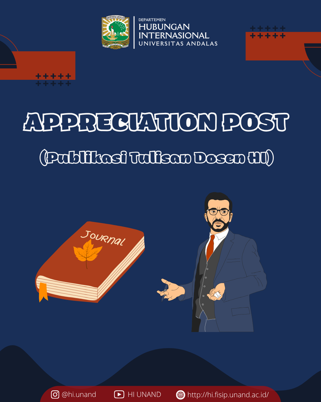 Departemen Hubungan Internasional Universitas Andalas kembali menorehkan prestasi akademik membanggakan melalui berbagai publikasi ilmiah dosennya di tingkat nasional maupun internasional. Publikasi ini menunjukkan komitmen dosen HI Unand dalam memperkuat kontribusi akademik terhadap isu-isu global, politik internasional, serta dinamika kawasan. 🌏…